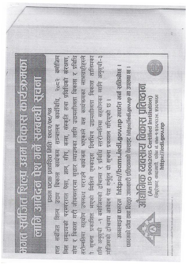 भगत सर्वजित शिल्प उद्यम विकास कार्यक्रमका लागि आवेदन पेश गर्ने सम्बन्धी सूचना ।
