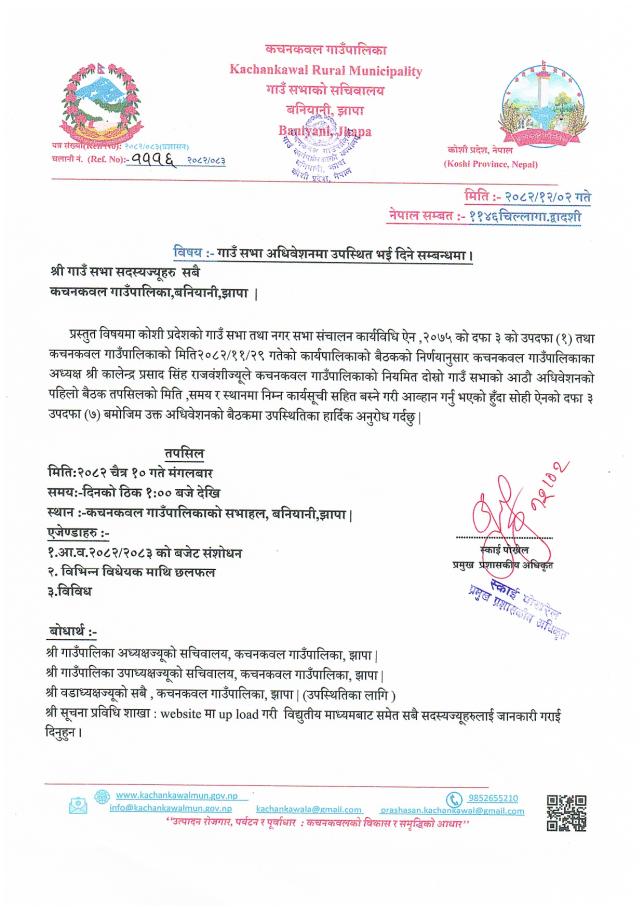 / गाउँ सभा अधिवेशनमा उपस्थित भईदिने बारे । | कचनकवल गाउँपालिका, गाउँ कार्यपालिकाको कार्यालय
