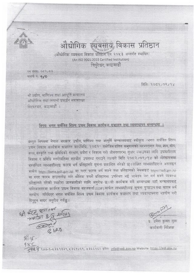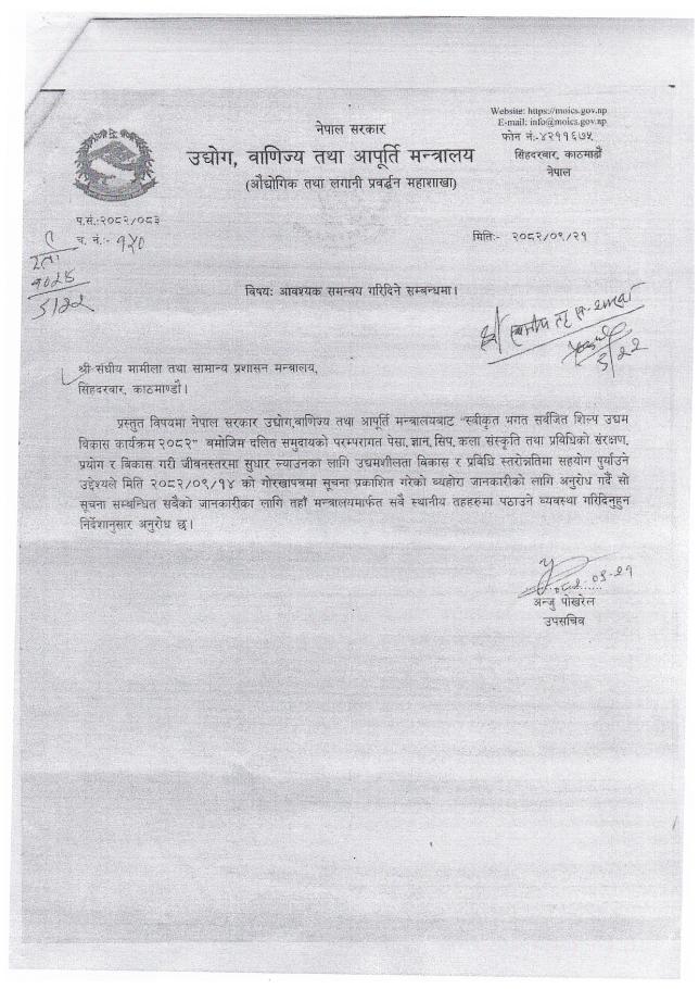 भगत सर्वजित शिल्प उद्यम विकास कार्यक्रमका लागि आवेदन पेश गर्ने सम्बन्धी सूचना ।