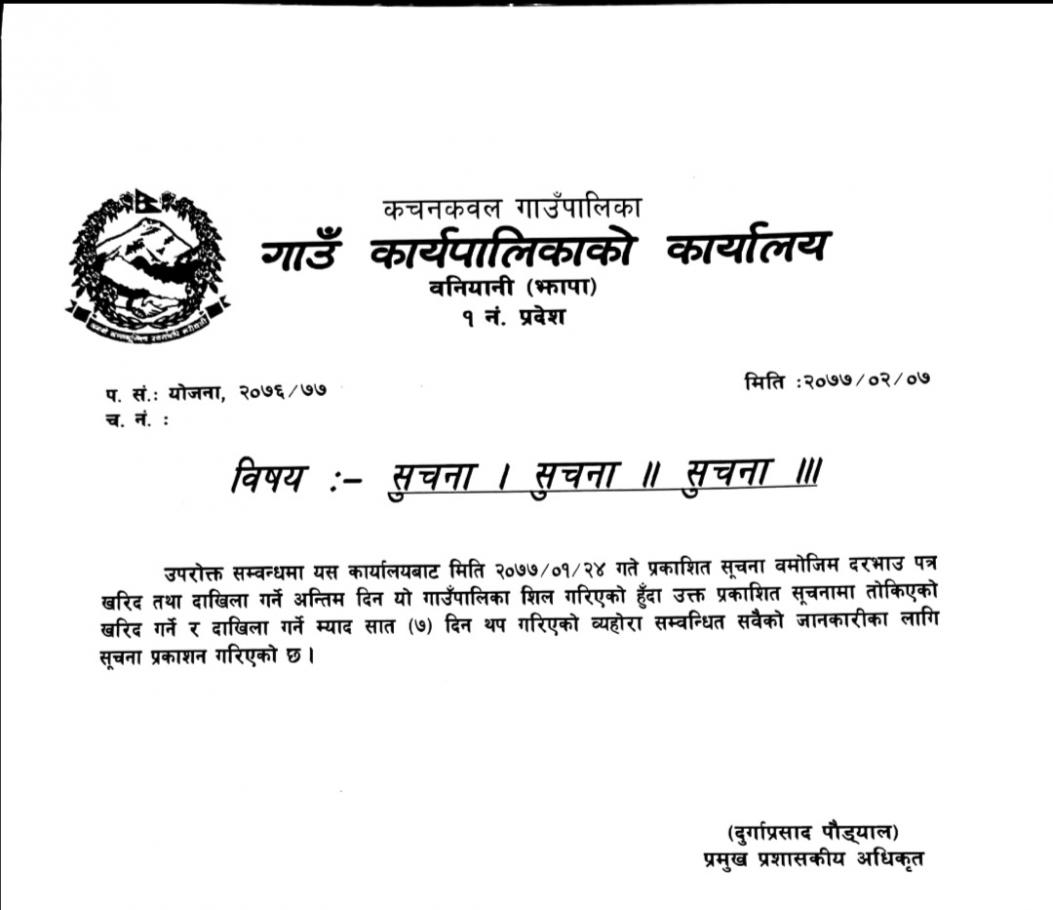 / सुचना सम्बन्धमा | | कचनकवल गाउँपालिका, गाउँ कार्यपालिकाको कार्यालय