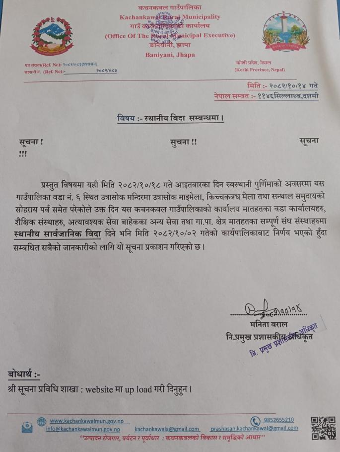 / स्थानीय विदा सम्बन्धमा । | कचनकवल गाउँपालिका, गाउँ कार्यपालिकाको कार्यालय